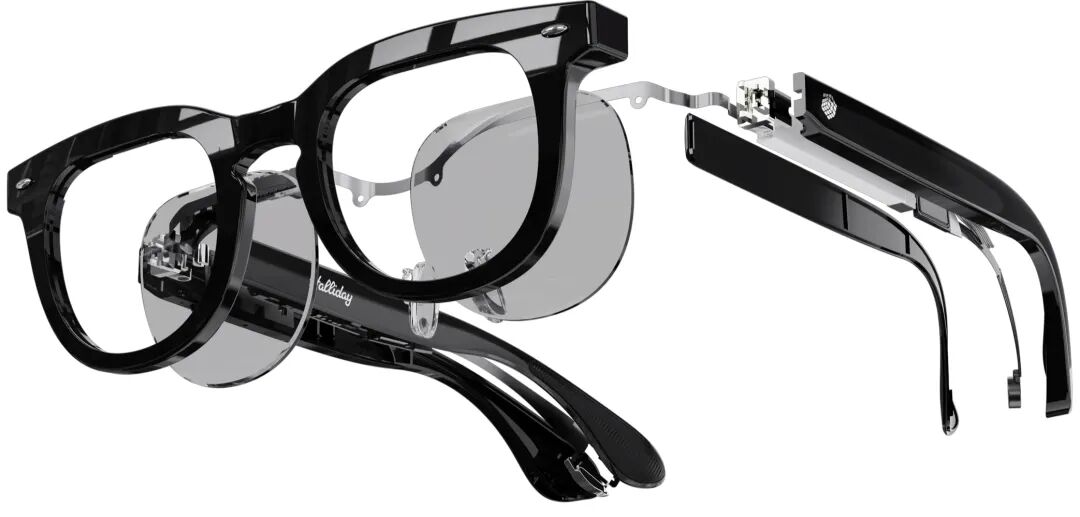 Halliday Glasses 由前身为国内仙瞬科技的初创公司 Gygès Labs 推出。重量仅 35 克,十分轻盈。其显示模块 “DigiWindow” 位于右镜框上方,能在镜片上显示 3.5 英寸的圆形单绿色屏幕,虽显示效果与一些 AR 投射相比略显逊色,但不会有 “彩虹纹”。续航方面,官方号称能使用 8 小时。用户可通过触摸镜框、佩戴 “指环” 或语音输入进行交互,功能包括读取手机日程消息、实时导航、提词器、听歌显示歌词、AI 实时翻译等。产品预计 2025 年第一季度末发货,价格在 399 到 499 美元之间。