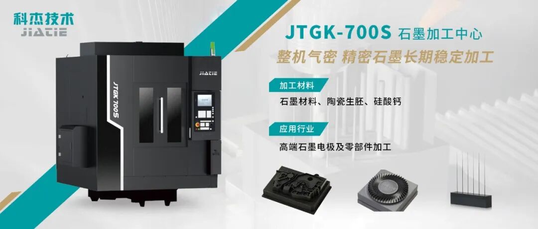 JTGK-700S 石墨高速加工中心是广东科杰 JIATIE 品牌旗下的一款高速、高精密级的干切石墨加工专用数控机床。此机型继承了佳铁雕铣机加工复杂曲面时优异的轮廓精度与表面质量, 全新的结构设计使其动态切削性能进一步提升,确保加工尺寸精度、 表面效果更加理想, 是高端石墨电极及其零部件加工的理想机型。