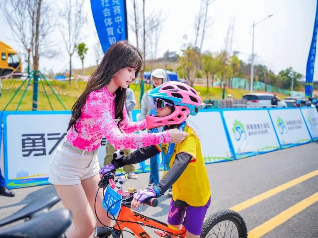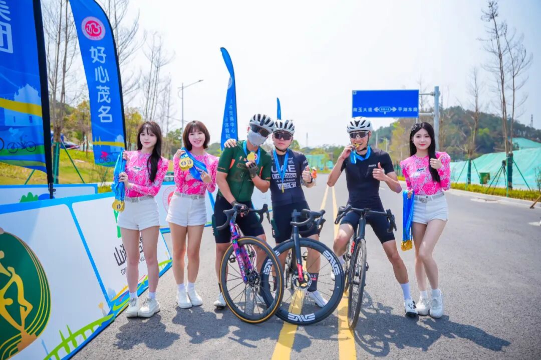 ▲2025中国山地自行车公开赛第一站(信宜站)女子公开组前三名▲2025中国山地自行车公开赛第一站(信宜站)男子公开组前三名8点45分,蔡建祥、王小慧、李龙飞、马丽芸共同按响鸣笛器。