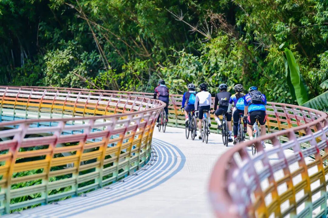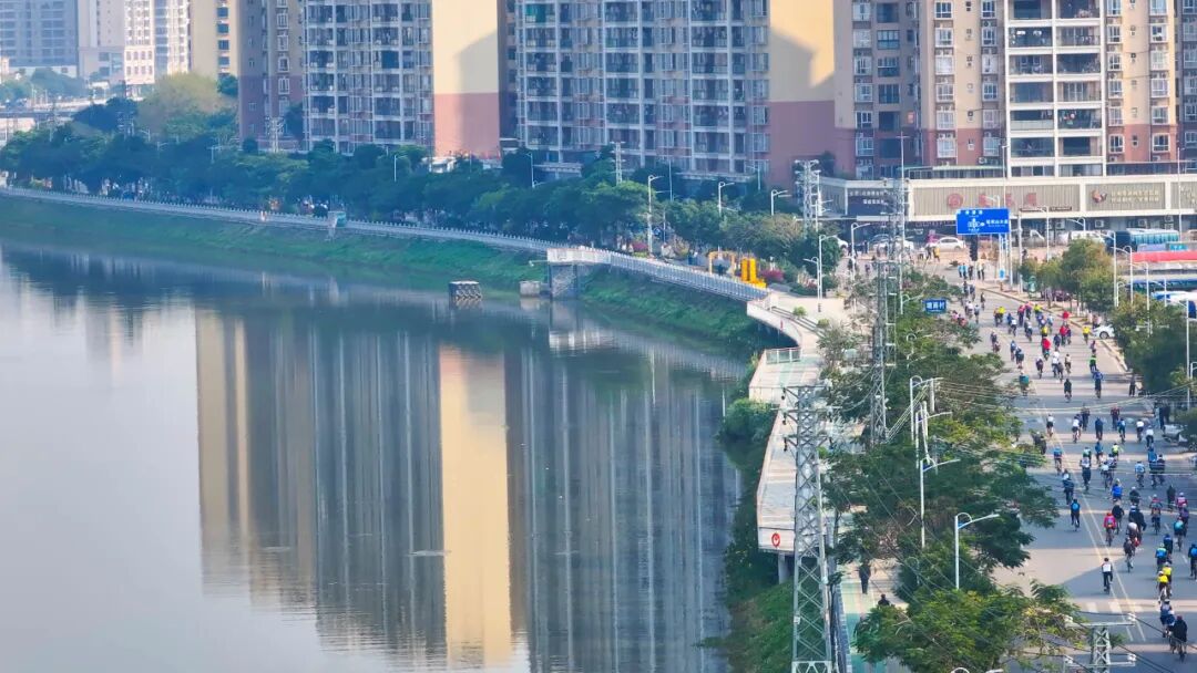 299号骑手陈女士看到信宜的风景风光,表示舍不得离开,感受非常好!参赛的骑手,激情挥洒汗水,先后进入锦江画廊碧道、西江画廊碧道和山水画廊碧道,一路看尽鉴江水岸、西江水岸风景,惬意感受乡野扑面而来的春天气息,探寻窦州古城里的千年遗韵,在充满人间烟火气的窦州里歇息,在水清岸绿景美的高城水库碧道段上恣意挥洒汗水,在山水公园、中心公园、书香公园、笔架山公园串联起的蓝绿廊道邂逅诗意春色。▲碧道▼