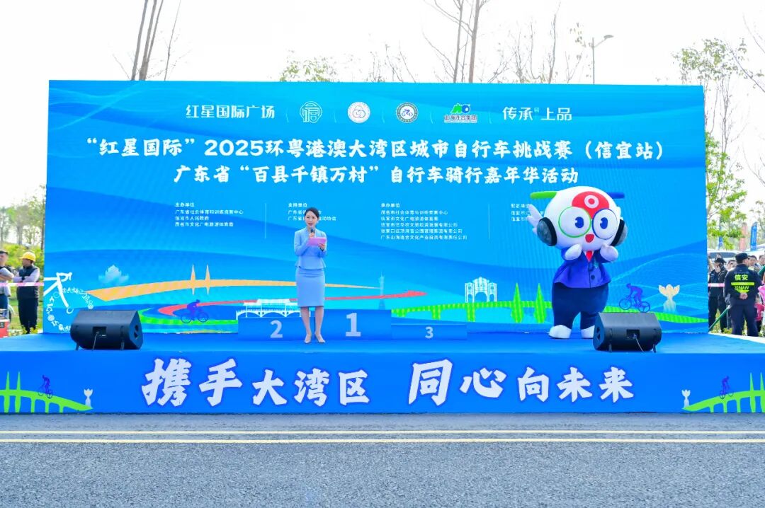 上午8时30分,“红星国际”2025环粤港澳大湾区城市自行车挑战赛(信宜站)暨广东省“百县千镇万村”自行车骑行嘉年华活动,在信宜体育公园拉开帷幕。骑手精神抖擞,整装待发,期待着“骑”妙之旅的开启。广东省体育总会副主席兼秘书长、省社会体育和训练竞赛中心主任、省自行车运动协会会长蔡建祥,茂名市委常委、宣传部部长张惠灵,茂名市人大常委会副主任杨雄,茂名市副市长王小慧,茂名市政协副主席赖强,信宜市委书记龚庆,信宜市委副书记、市长李龙飞,茂名市文广旅体局局长柯碧,信宜市副市长江立颖,广州亚运会小轮车竞速女子冠军马丽芸以及大赛组委会、活动组委会相关负责人出席。大赛为3月22日结束的2025中国山地自行车赛公开赛第一站(信宜站)比赛的女子公开组、男子公开组冠亚季获得者,分别颁发奖金。