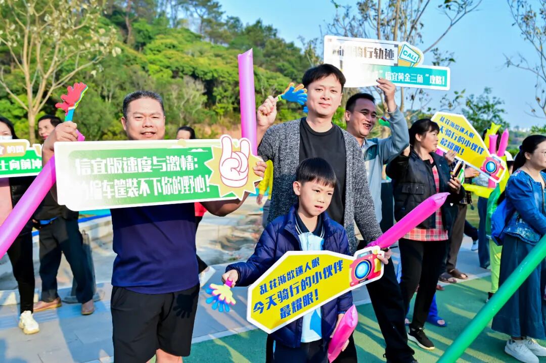 随着挑战赛正式启动的鸣笛声响,骑手一“骑”行动,在现场的加油声和欢呼声中斗志昂扬发车,在信宜这座现代活力之城烙印“骑”迹。现场看到,参赛的骑手都全副武装,穿着骑行服骑着自行车,即兴参与的市民和游客也不甘落后,也出动了最高装备参与。参与骑行的骑手,有老有小,覆盖了各个年龄阶段,还有不少是亲朋好友一组。210号骑手温先生特意从广州过来参赛,他说:“1985年第一次来过信宜,现在变化好大!好舒服!信宜的人民好热情!”在暖洋洋的春光中,骑手们先后经过城区含章桥、飞鹰、窦州里、梅岗公园、流云阁、中轴广场、山水公园等城市打卡点。干净舒适的赛道,青春活力的城市气息,让第一次到信宜来参赛的粤港澳骑手们忍不住放慢车速,感受赛道两旁美丽风景。