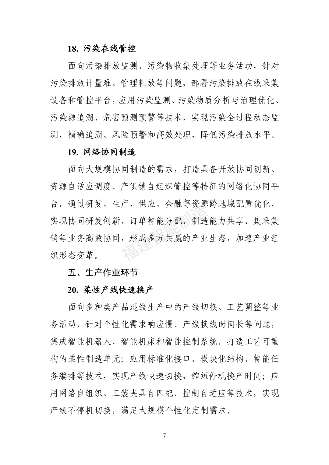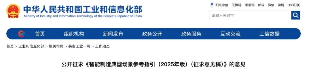 点击上方蓝字关注我们公开征求《智能制造典型场景参考指引(2025年版)(征求意见稿)》的意见为加快推动制造业数字化转型智能化升级,打造智能制造“升级版”,我们在《智能制造典型场景参考指引(2024年版)》基础上,结合智能制造发展实践,进一步修订形成了《智能制造典型场景参考指引(2025年版)(征求意见稿)》(见附件)。现公开征求社会各界意见,若有意见或建议,请于2025年3月31日前通过书面或电子邮件方式(请在邮件或信件上注明主题“智能制造典型场景参考指引反馈意见”,并留下联系方式)反馈工业和信息化部装备工业一司(智能制造处)。联系电话:010-68205633传真:010-66013726电子邮箱:zhaofengjie@miit.gov.cn附件:《智能制造典型场景参考指引(2025年版)(征求意见稿)》工业和信息化部装备工业一司2025年3月19日《智能制造典型场景参考指引(2025年版)(征求意见稿)》来源:工业和信息化部装备工业一司声明:本公众号(fjznzz)编发的内容,纯公益传送,仅供行业内部参考。部分文章图片因转载众多,无法确认原作者,仅标明转载来源,版权归原作者,如有异议,请联系我们删除。办公电话:0591-88846666工作邮箱:cjh88846666@163.com工作微信:fjznzzcjh