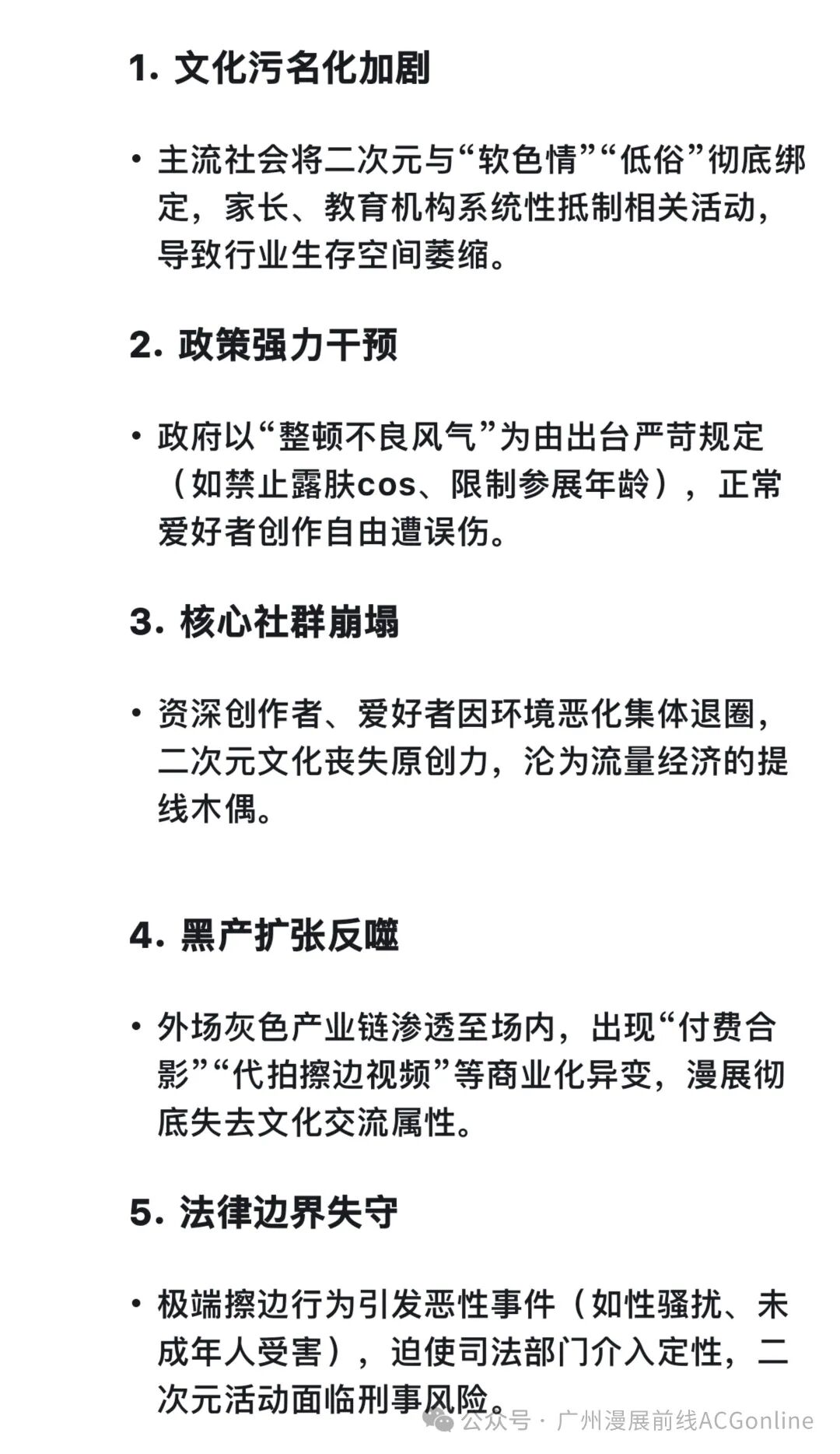 更严峻的是,外场乱象正加剧公众误解——某新闻媒体将漫展报道为“软色情聚集地”,配图外场乱象,导致某中学领导层看到后,直接禁止学生参加COSPLAY活动。久而久之,哪怕是不了解二次元文化、COSPLAY文化的局外人们,也已自然而然地在内心的烙下不好的印象。二次元污名化,是当今的大势所趋。