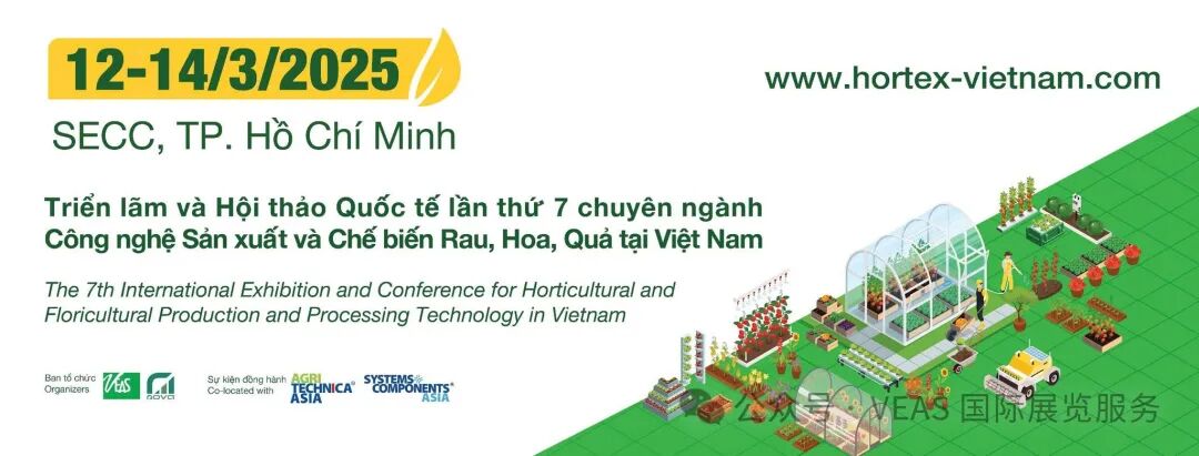 自2025年起,由德国农业协会(DLG) 所主办《的亚洲农业机械展》(Agritechnica Asia)将与VEAS、NOVA 所主办的《越南国际果蔬花卉生产暨加工技术展》(HortEx Vietnam)在越南胡志明市SECC展馆同期举行。