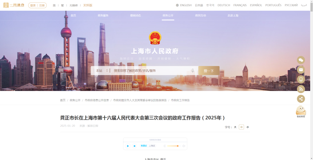 龚正市长在上海市第十六届人民代表大会第三次会议的政府工作报告(2025年)