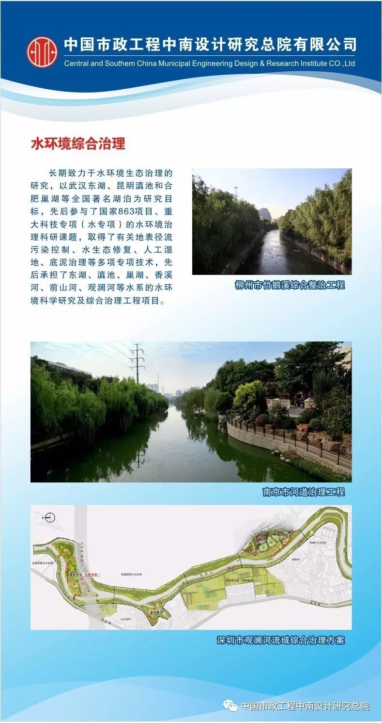 我院应深圳市水务局邀请,在“治水提质新技术主题展”展区设置了展位参展。院总工程师兼副院长李树苑、第七设计院院长黎柳记亲临展台推介参展项目,展示了给水工程、排水工程、污泥处理工程、地下综合管廊工程等一批具有代表性的工程案例,以及受污染水源水净化集成技术研究、雨污联合调控及强化处理技术研究、水环境综合治理等创新成果。