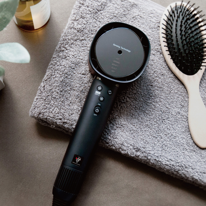 A hair dryer that dries hair quickly, effortlessly, and beautifully. Resolving the problems not only of women, but also of the elderly and those raising children. The newly developed unique four-point airflow structure achieves quick drying without relying on heat, and the body is compact and easy to handle.