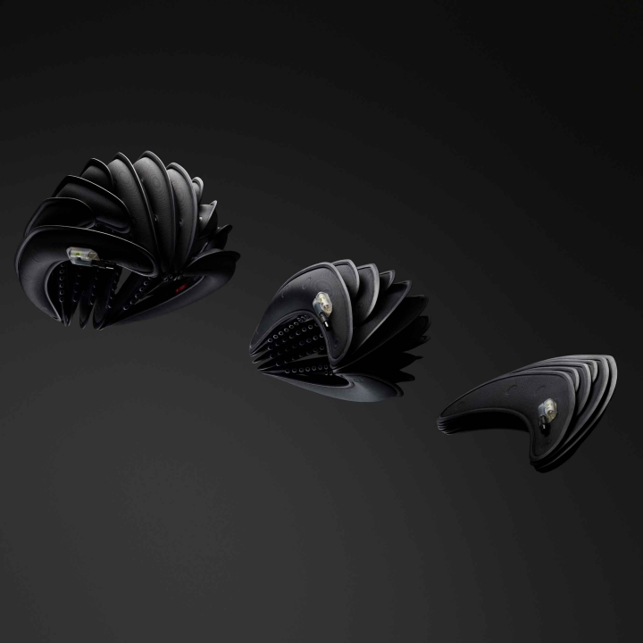 “压力下的变形”是一系列通过整合电路板和调节方向的结构,由可回收的TPU材料制成的可调节充气灯。