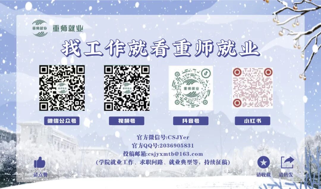 免责声明:重师就业微信公众号系信息发布平台,仅提供信息存储空间服务,本平台相关内容由用人单位提供,如涉及侵权,请联系我们删除。