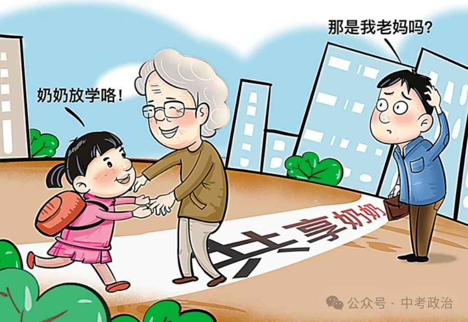 98.目前,全国很多城市都出现类似漫画中的“共享奶奶”,她们不仅帮助有需要的家庭接送孩子,还积极参与到矛盾调解、环境治理、民俗传承、文化建设等基层治理工作中。她们不仅是孩子们的“共享奶奶”,而且是全社区的“共享奶奶”。“共享奶奶”现象能“火”起来,是因为其蕴含着( )