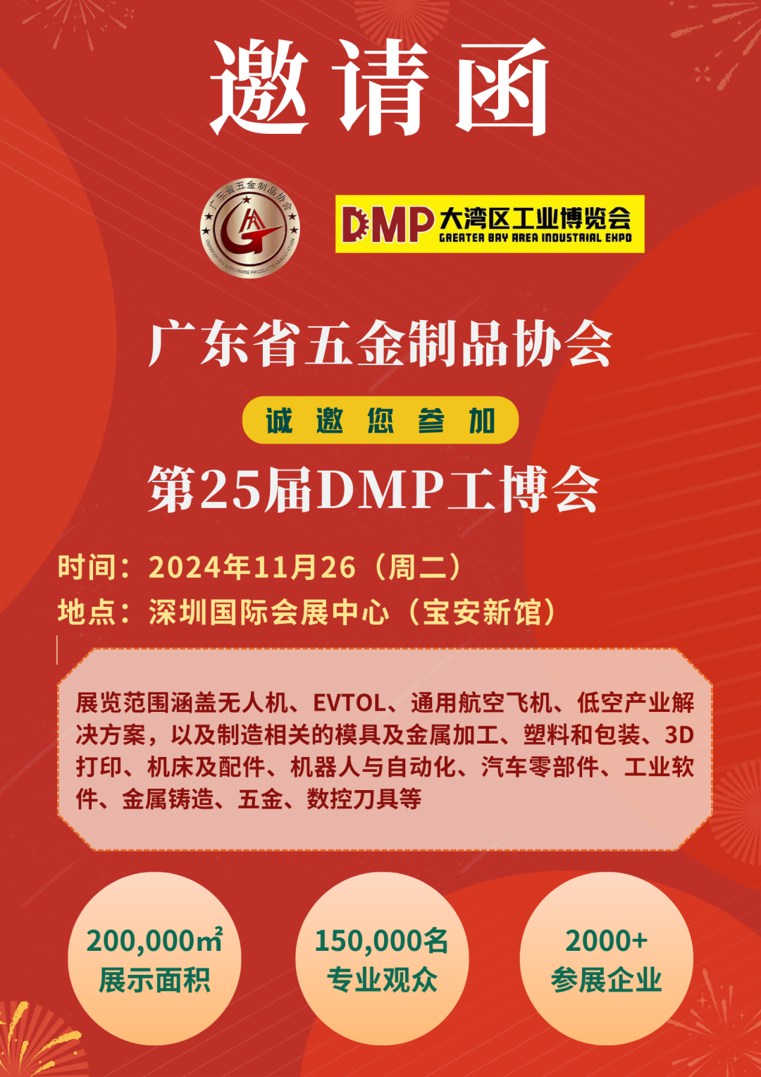 2024DMP 大湾区工业博览会(以下简称“DMP工博会”),将于11月26-29日在深圳国际会展中心(宝安新馆)举行!展会规模20万平方米,已经是最具影响力的工业博览会,展览范围涵盖无人机、EVTOL、通用航空飞机、低空产业解决方案,以及制造相关的模具及金属加工、塑料和包装、3D 打印、机床及配件、机器人与自动化、汽车零部件、工业软件、金属铸造、五金、数控刀具等。