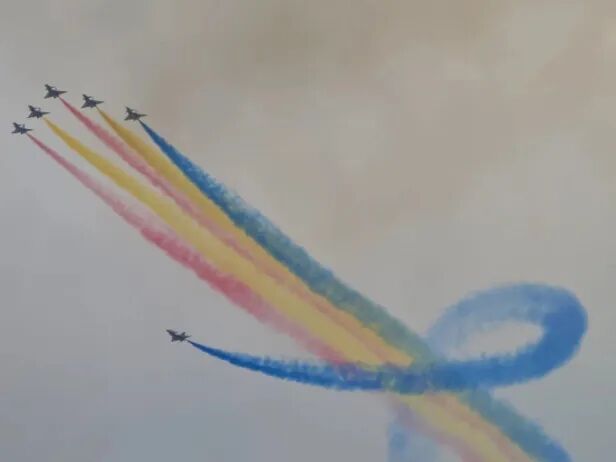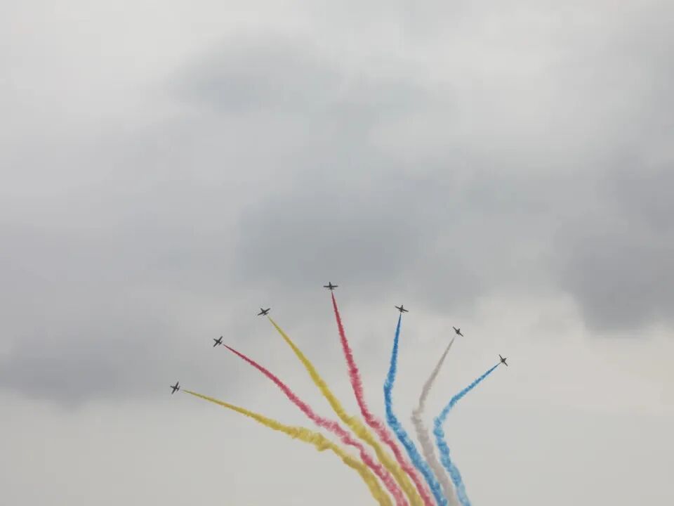 飞行表演依然如期举行,飞行员们驾机升空,展现出非凡的飞行技艺。观众们不畏雨水,撑着五彩斑斓的雨伞,坚守在雨中,共同见证这一壮观场面。每当飞机掠过我们的视线,现场便响起一阵快门声,大家纷纷举起手机或相机,捕捉这难得一见的瞬间。毕竟,这样精彩的飞行表演在平时是难得一见的,每个人都希望能够将这份珍贵记忆永久保存。