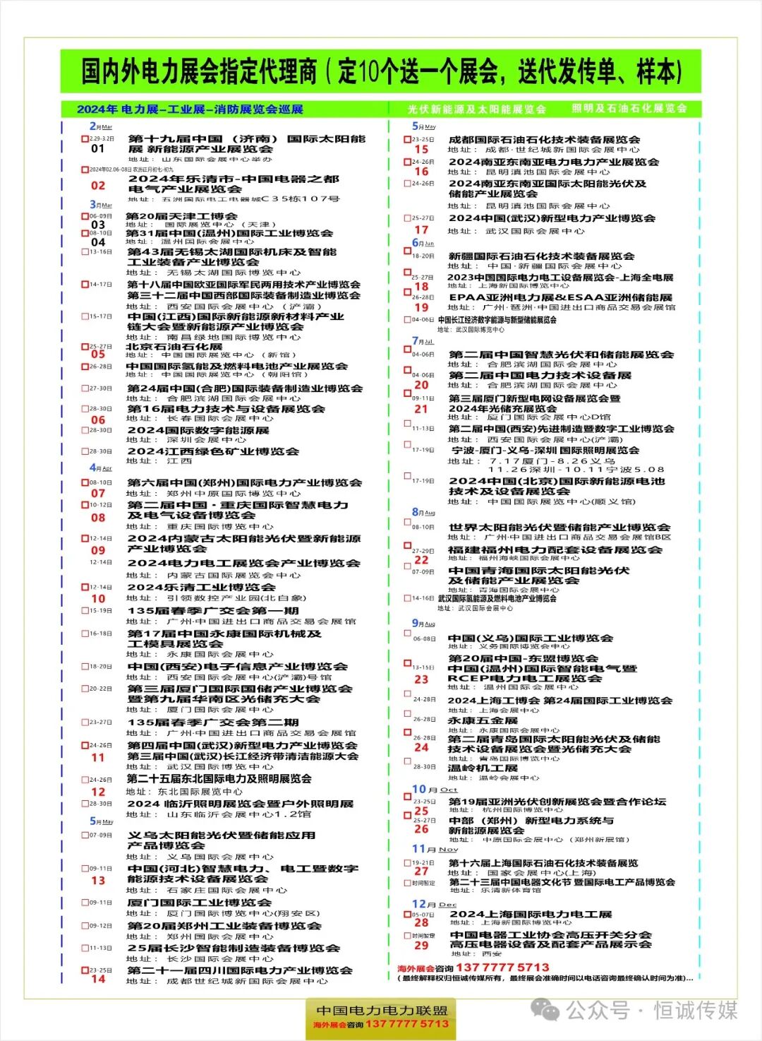 2024“中国电力电器联盟”国内外展会信息登记印刷
