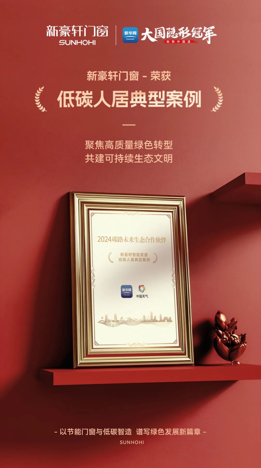 勇担行业低碳先锋与责任,引领社会健康人居新升级,新豪轩将以荣耀为勉、以荣誉为石,砥砺向上,谱写门窗绿色发展新篇章。
