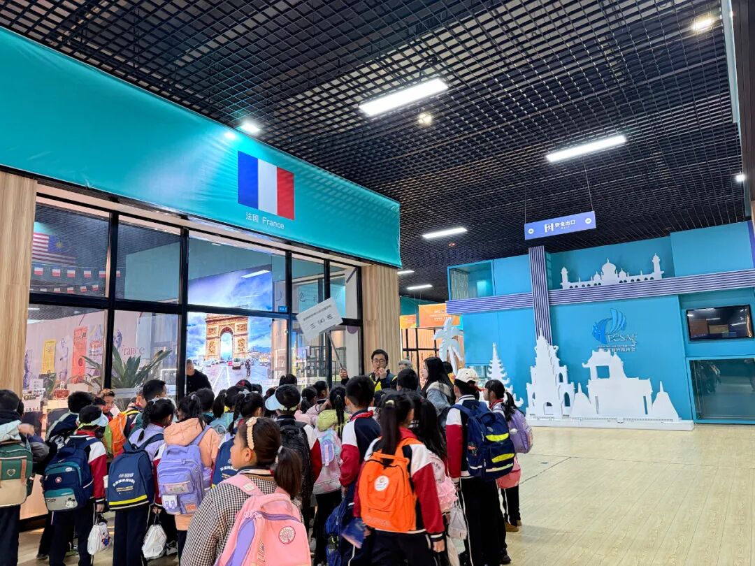 参观过程中,学生们漫步于各国展馆,仿佛置身于异国他乡,亲身感受不同国家的文化魅力。从南亚的古老文明到东南亚的热带风情,从传统手工艺品到现代科技产品,学生们领略了世界文化的多样性与丰富性。场馆精心设计了丰富的互动体验项目,学生们在轻松愉快的氛围中学习知识,开拓视野。