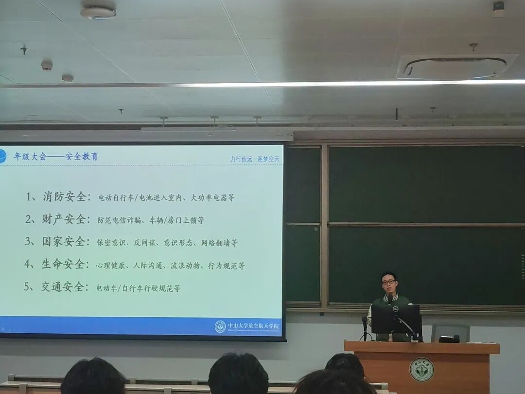 在本次院长第一课之后,辅导员钟轩老师召开年级大会,为同学们进行了全面的安全教育,提醒同学们时刻注意校园安全和防范电信诈骗等,增强安全意识。同时,钟轩老师为同学们讲解了未来一年在推免、考研、留学、就业毕业等方面的时间节点和注意事项,为同学们做好职业生涯规划提供了重要的参考。