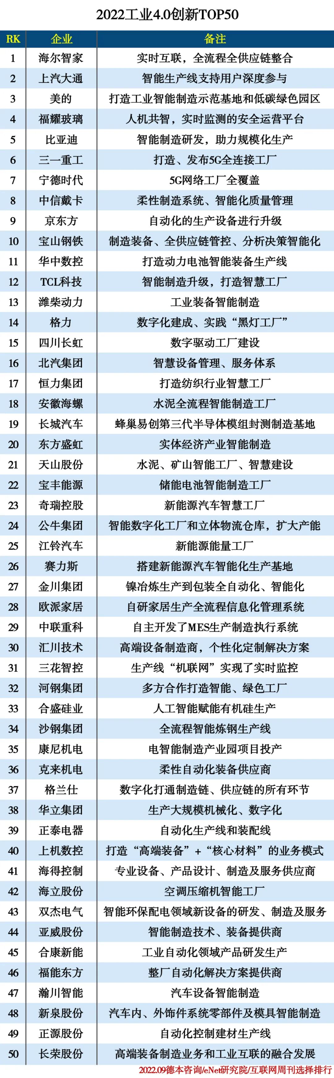 工业4.0由德国政府最早在2011年提出,指利用信息通讯技术和网络空间虚拟系统提升制造业的智能化水平,将生产制造、供应、数据和流程进行数据化、智慧化处理,建立具有强适应性、高效资源利用的智慧工厂,提升工程、生产、服务等活动的灵活性,达到有效和个性化生产供应的目的。继蒸汽时代、电气时代、信息时代三大工业革命之后,全球化分工加速了生产要素的流动和配置,市场风向变化和产品个性化需求对企业生产时间和生产能力提出了更高的要求。基于此,以物联网和智能制造为主导的第四次工业革命悄然来袭。通过计算、自主控制和联网,人、机器和信息能够互相联接,融为一体,成为“工业4.0”所描绘的工业愿景。当前,工业制造面临着诸多挑战,企业方面,对低成本、更短产品生产周期、更短交付时间、技术人才、产品品质等环节标准的要求越来越高;消费方面,对大数据、机器人、社交化应用需求越来越多,工业制造更快速、精准地进入市场,将生产行为与科技相融合而优化生产流程、满足工业所需的趋势更加明显,这也赋予了工业4.0几个特征:第一是深度网络化,随着5G、物联网等技术的发展,工业4.0的网络体系更加完善,相关的标识技术、加密技术、安全技术、交易规则得到进一步重视,驱动工业4.0向着深度网络化方向演进。在万物互联的时代,人、产品、数据在网络环境下相联接,在线化、实时化的数据处理和检测记录正改变着工业制造的模式。第二是智能自动化,目前很多工厂已经在自动化生产线的基础上植入了人工智能技术,通过人脸识别、图像识别、图像搜索、声纹识别、机器学习、大数据计算、数据可视化等技术,形成制造业的智能网络,使人与人、人与机器、机器与机器以及服务与服务之间互联互通,从而实现横向、纵向和端到端的高度集成,工业4.0概念下的自动化正向着高度智能化方向发展。第三是运营平台化,工业4.0的落地实施更多的是依靠工业互联网平台。人民网研究院发布的《中国移动互联网发展报告(2022)》指出,目前中国工业互联网平台呈现快速发展趋势,全国范围内,有影响力的工业互联网平台数量已经超过70家,平台接人设备数量突破4000万台(套),工业APP数量超过35万个。专业型平台不断涌现,不同领域的专业服务企业结合自身技术优势,打造基于工业互联网平台的制造业新生态,对知识共享、研发升级、产业链协同形成支撑,以客户为中心、以市场需求为依据而综合设计的工业互联网平台发挥着重要的作用。在大数据、人工智能、虚拟工具等一系列技术深度应用的背景下,旧有的制造模式被不断颠覆,跨界融合、精准服务的趋势日益显著。借助丰富的场景应用,一方面,生产线、工厂、设备、工艺、供应商、产品和客户被紧密地联系在一起,另一方面,工厂、工程等工作人员以及供应商、客户等参与人员的需求得到极大的满足。现代制造体系在减少用工、保障人工安全、生产线实时监测等各个方面的运营效率不断提升,更重要的是,还将打通产品、用户需求、制造过程中的数据壁垒,令生产更加透明、高效和智能,从而能够准确响应用户定制的个性化需求,驱动生产线的智能化转型,最终实现企业的全价值链数字化可控。工业时代前期,成规模、大批量的产品生产线满足了社会对工业品的需求,但随着市场差异化需求的增长,对生产线的要求越来越高,个性化产品及服务得到大众的青睐,事实上,从欧美工业4.0的快速转型和持续影响全球经济的情况能够看出,自动化、智能化以及数字化能力强的企业,更有能力快速完成生产线切换或者能快速调整战略,而这也已经成为新一轮企业的核心竞争力。比如,柔性制造的重要性已被越来越多的先进企业感知,和刚性生产不同,柔性制造强调了在最少人的干预下,能够生产任何范围的产品族,从而满足“多样化、小规模、周期可控”的生产要求。可以预见的是,随着参与者、产品、生产过程三要素进一步走向“智慧化”,协同互联并形成新的价值网络,从刚性生产向柔性智造、互联互通的发展将成为必然。同时,对企业来说,将传统工厂关注的制造环节向前端设计环节以及后端服务环节不断延伸,更好地满足人们的个性化需求,更好地出体现以人为本的智慧社会特征,是提升经济效益、品牌影响力、行业形象的最佳方式。企业发展要找准方向,要根据自身工厂的生产线结构,配置相应的资源,抓住市场机遇,才能依照正确的路线进行发展。虽然未来智能工厂的形势乐观,但也不应盲目跟风发展数字化,不然可能达不到自身的预期。工厂也不能想着一蹴而就,需要不断调整、发现问题,再进行优化,逐步建立适合自己工厂的数字化生产体系。2022年3月底世界经济论坛披露了最新的全球“灯塔工厂”名单,共有13家“数字化制造”和“全球化4.0”示范者入选,其中有6家工厂来自中国,全球已获得认证的“灯塔工厂”由91家上升到103家,中国灯塔工厂数量由31家上升到37家,占比超过1/3。但这37家工厂并非全是中国本土品牌的工厂,更多的品牌和企业其实来自西欧,中国尽管是制造大国,但距离4.0还有很长的路要走。当前,我国制造业如何创新自己的理念、体系和技术,树立自己的工业品牌,是产业界、学术界以及国家都关心的重要问题。首先在战略层面,数字化和智能化的平台或技术不仅仅是一种手段或工