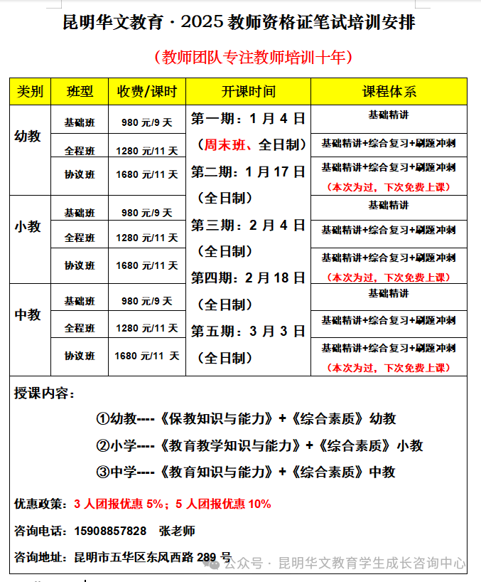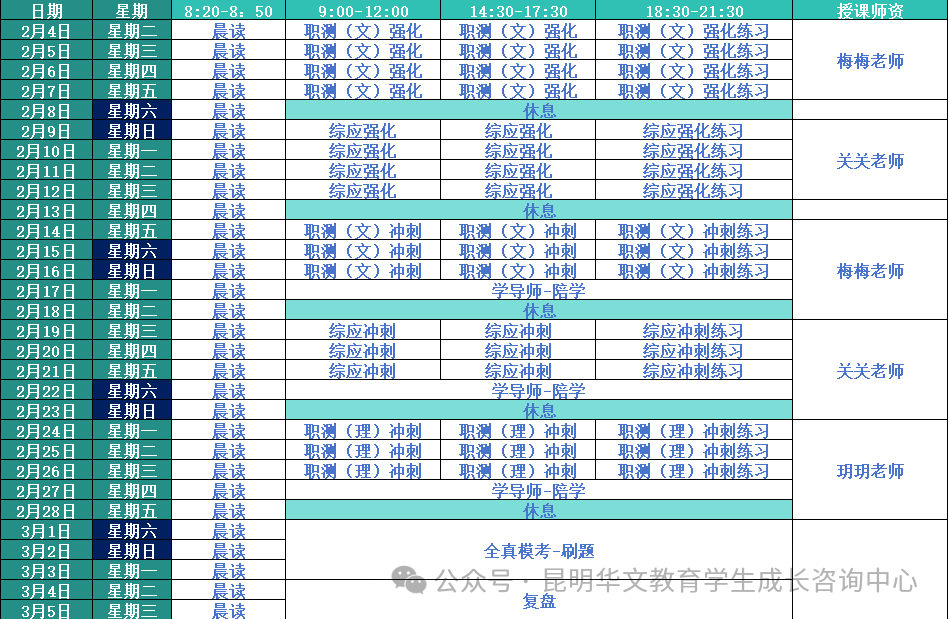 昆明华文教育·2025上半年事业单位D类1班课程表