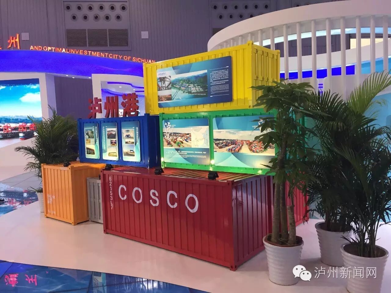 作为四川省第一大港,泸州港是整个西部地区出海的南大门,也是联系成渝地区的主要通道之一。目前,泸州港已经开通泸州——武汉、南京、上海的集装箱班轮航线30班/周,开通近洋航线3条,开通泸州——成都、昆明、攀枝花等地的铁水联运班列12班/周。此次西博会,泸州在会场用集装箱“建”了一个微型“泸州港”,作为重点对外推荐的泸州元素。