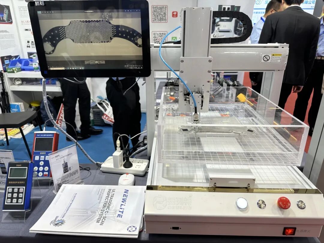 值得一提的是,上海扭列特携自主研发的超声波水浸C扫描检测系统亮相本次展会。