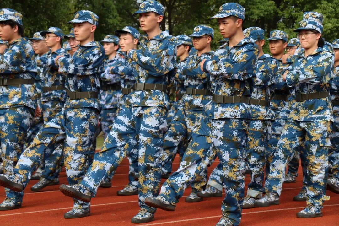 穿着整齐的迷彩服在阳光之下尽情释放着自己的青春活力。整齐嘹亮的口号,整齐划一的队列无不体现出我们智造学子的风采。