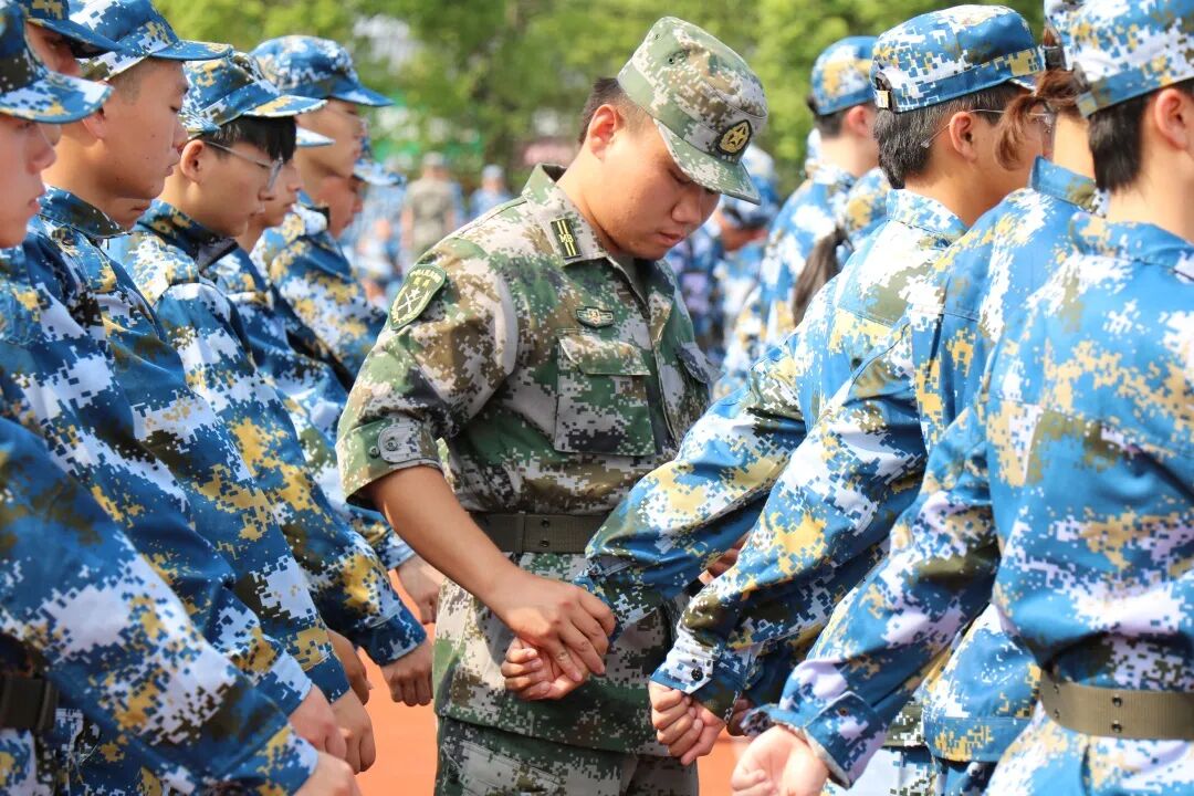 整齐的行列,斑斓的迷彩。在舞动的营旗围绕下为期两周的军事训练正式展开。
