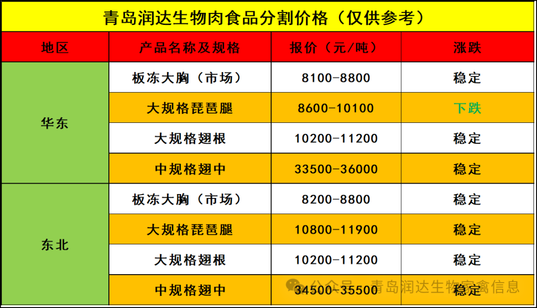 近日经销商拿货积极性一般,产品出货节奏平稳。近期毛鸡价格稳定,经销商适量补货,预计产品价格趋稳运行。