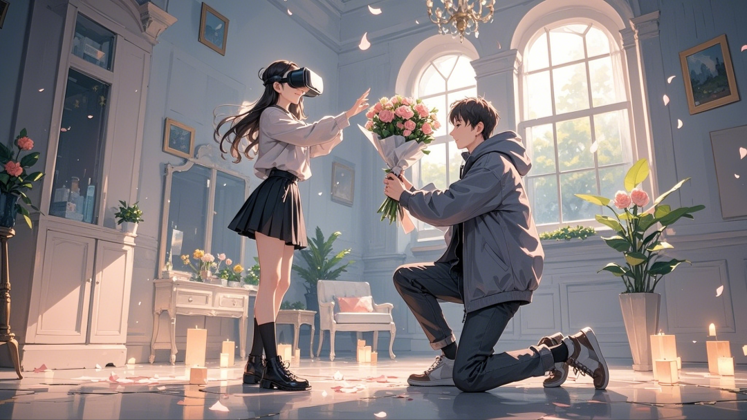 “哇!好适合用来求婚呀,画面里植入恋爱的过往,然后鲜花、戒指递过来,摘下眼镜的同时,眼前是半跪着求婚的男生。”