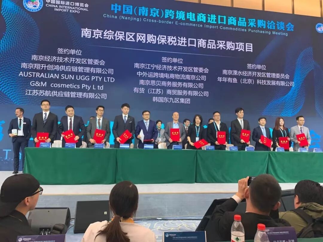 11月7日,由江苏省政府举办的“中国(南京)跨境电商进口商品采购洽谈会”在上海国家会展中心举办。本次活动以“新机遇、新模式、新业态”为主题,搭建专业化、国际化、高端化的合作交流平台,将积极对接进博会,扎实推进中国(南京)跨境电子商务综合试验区建设,向来自全球的客商全面推介南京跨境电商发展政策环境,扩大商品进口、促进消费升级。