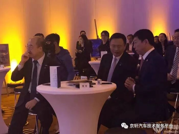 拜腾的展位看起来比较拥挤一些。在展馆中间位置,旁边是一个小的茶歇去,坐满了人。发布会在茶歇区旁边的小空场举办,中国通戴雷博士倾情出席了发布会。