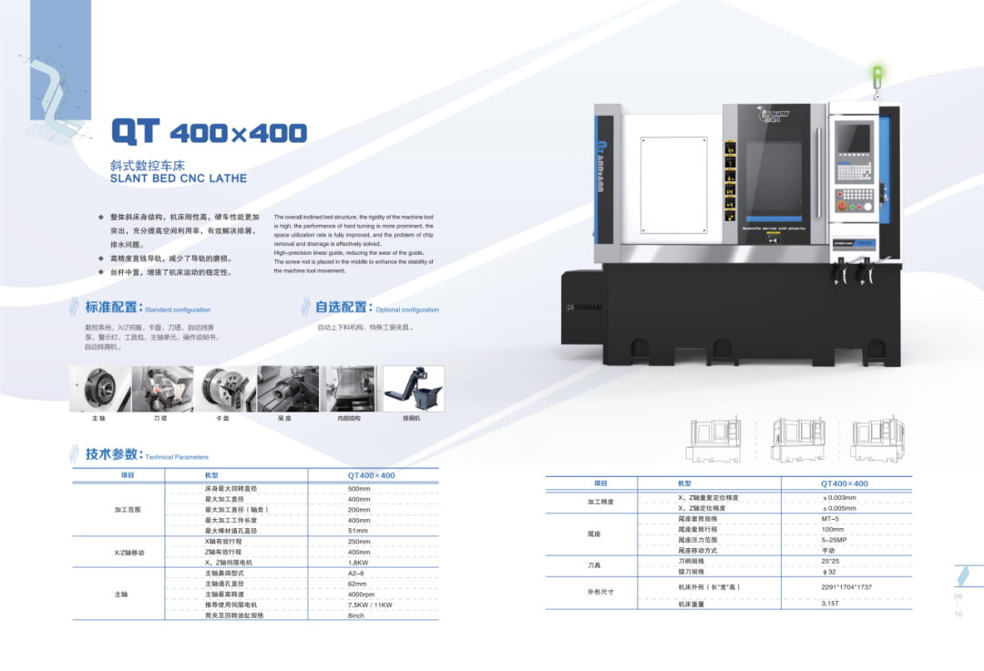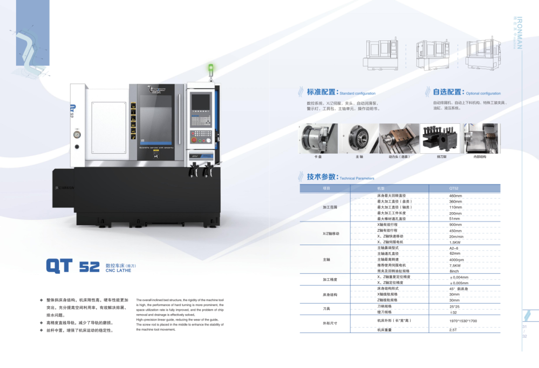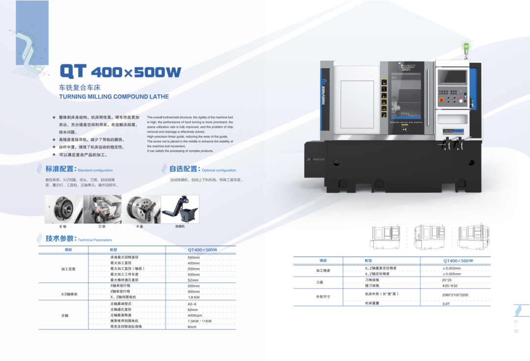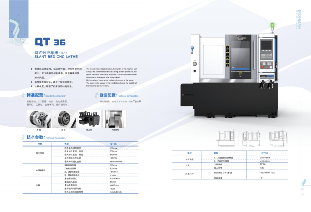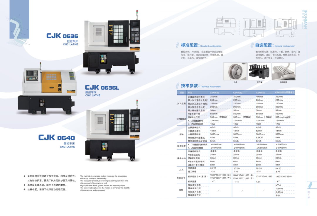 公司经过多年的发展,积累了丰富的制造经验和一整套先进生产管理体系。近年来不断加大投入,引进具有高端技术含量的龙门加工中心,卧式加工中心等多台套国内外一流生产设备,从而提高了产品品质。本公司生产的“小铁人”牌数控机床产品有:QT320L 斜式数控机床、QT400x400 斜式数控机床、QT400x500 斜式数控机床、QT500x400 斜式数控机床、QT500x750 斜式数控机床、QT36 数控机床、QT46 数控机床、QT52 数控机床、CJK0636 数控机床、CJK0636L 数控机床、CJK0640 数控机床。以高效、快捷简便的工作原理,深受广大用户的信赖和好评,在国内外市场上也获得了良好的口碑和赞誉。