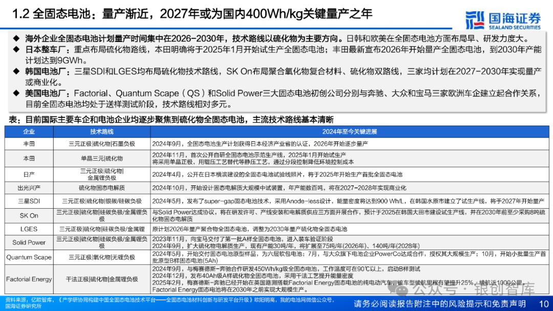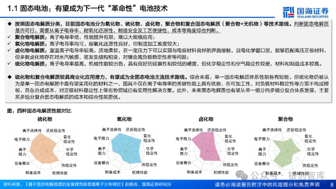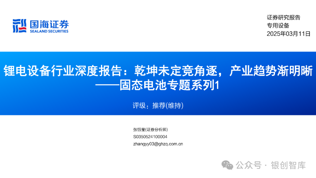 【报告1022】【24页PPT】固态电池产业路在何方? 【报告1068】最新丨固态电池材料升级方向&产业化进度 【报告1080】固态电池产业链概览(1万字) 【报告1101】深度梳理丨固态电池行业技术优势、发展困境、市场空间、技术路线及相关公司 【报告1122】锂电产业链追踪:固态电池最新产业化进展 【报告1125】2024中国全固态电池产业研究:全固态电池即将迎来量产元年 【报告1145】固态电池核心技术路线:硫化物固态电池产业概览 【报告1154】中国硫化物全固态电池行业研究(2024) 【报告1157】2024固态锂电池技术发展白皮书(55页全文) 【报告1201】【60+页PPT】固态电池行业年度总结报告 【报告1224】固态电池深度:从技术本征看固态电池产业发展趋势 【报告1231】2025固态电池行业深度:eVTOL发展带来百亿市场增量 【报告1271】62页PPT了解国内外40家固态电池典型企业技术路线