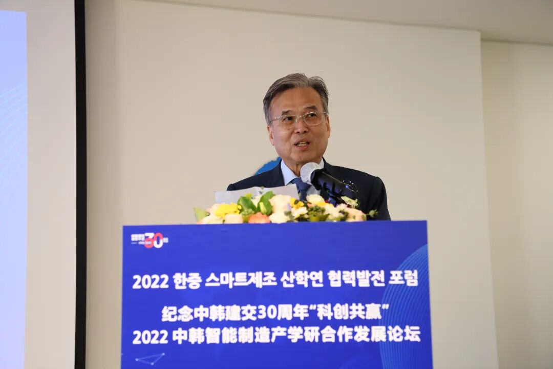 为纪念中韩建交30周年,“2022年中韩智能制造产学研合作发展论坛”在首尔成功举办,同时论坛在宁波、北京两地开设分会场连线互动。邢海明大使出席活动并致辞,中国科学技术交流中心主任高翔、韩国国会议员尹永灿、中日韩合作秘书处秘书长欧渤芊、宁波市人民政府副秘书长励志纲、韩国京畿大学校长李仑圭、宁波大学副校长吕朝锋分别在论坛开幕式上致辞,并特邀浙江大学院士谭建荣致辞并作主旨演讲。