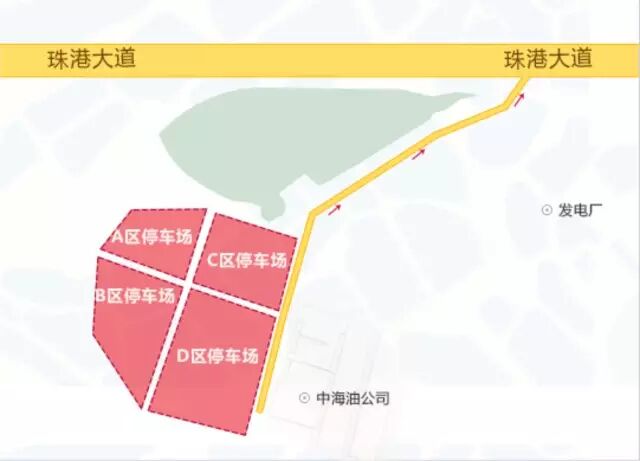 如选择珠海大道前往展区,须沿珠海大道——金湾互通立交(直行)——珠海大道——机场北路——机场西路进入接驳停车场R1、R2或P4停车场。