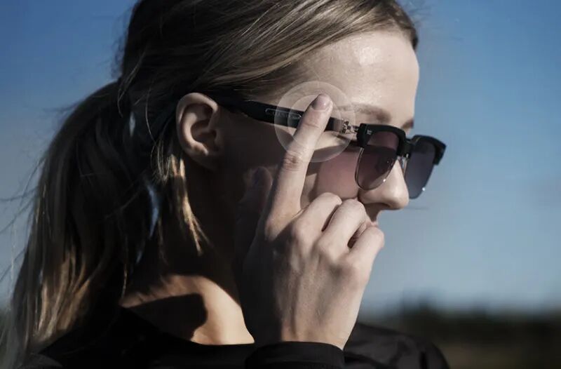 这款产品将骨传导技术和运动眼镜合二为一,非常适合在户外跑步、骑行等运动场景下使用。和传统的运动耳机相比,骨传导耳机「开放双耳」的特性正在被越来越多的运动爱好者所接受。并且看起来和普通的运动眼镜并没有太大的区别,电池、主板等元件都被隐藏到了眼镜腿里面,骨传导部分的加入并没有破坏原有的产品形态。