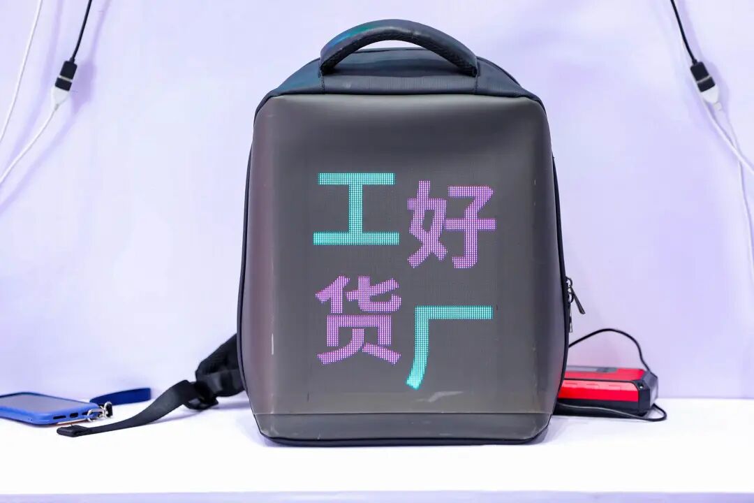 研色科技将背包与LED显示屏巧妙融合在一起,推出研色LED动感背包,通过手机无线控制,让背包也能显示图像、动画,可作为广告屏使用也可自定义图案展示自己的个性,时尚拉风,回头率百分百。