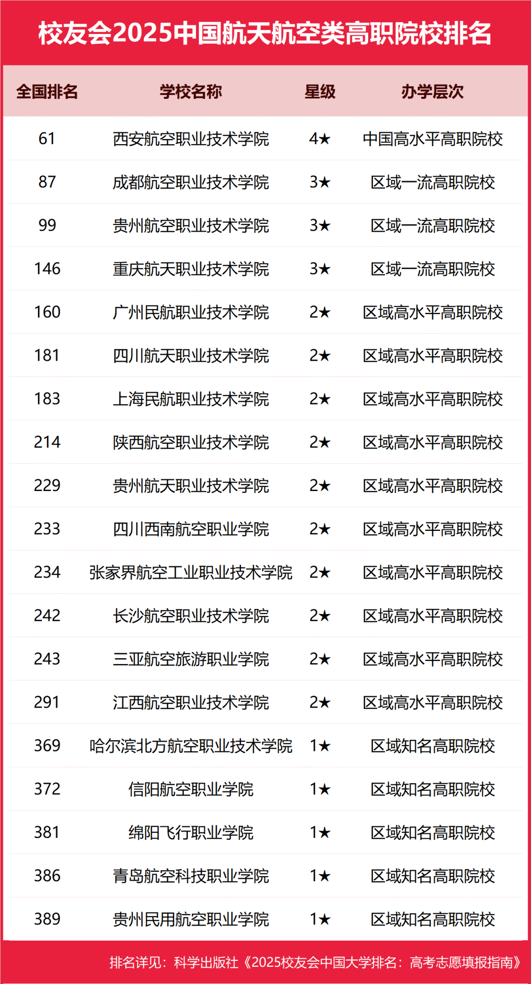 校友会2025中国航天航空类大学排名,北京航空航天大学、西安航空职业技术学院第一