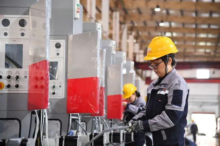 2024年10月23日,工作人员在位于陕西省渭南市的陕西北人印刷机械有限责任公司生产车间组装产品。新华社记者 张博文 摄