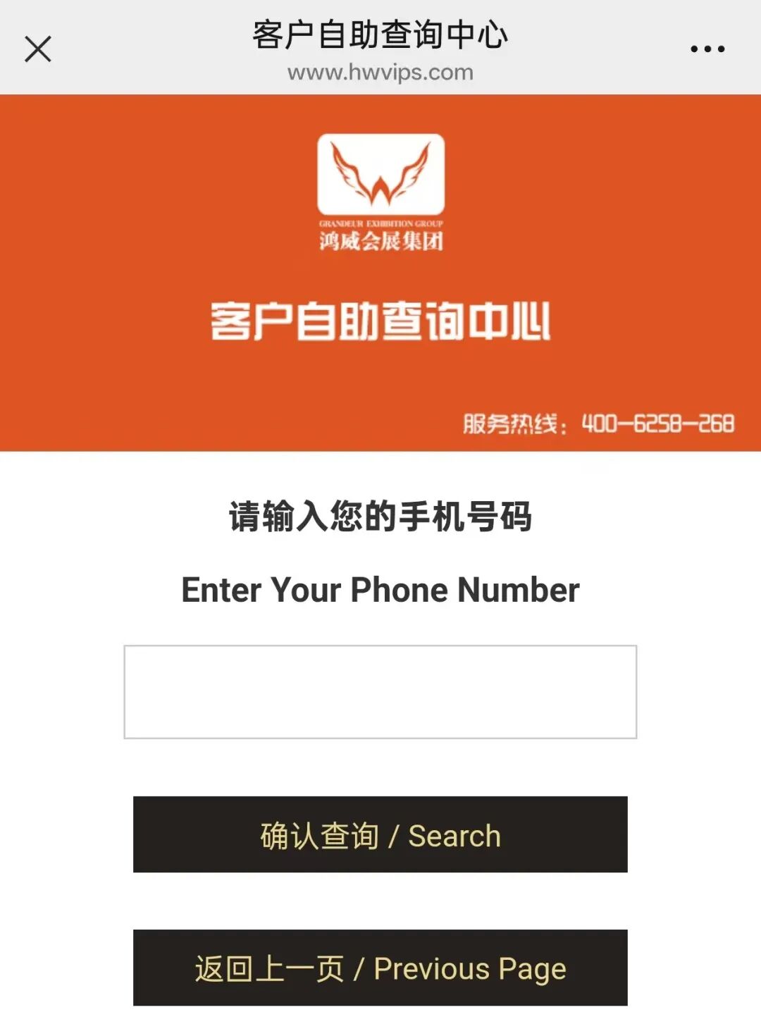 最后进行客户自助查询,进入客户自助查询中心,输入登记的手机号查询登记信息
