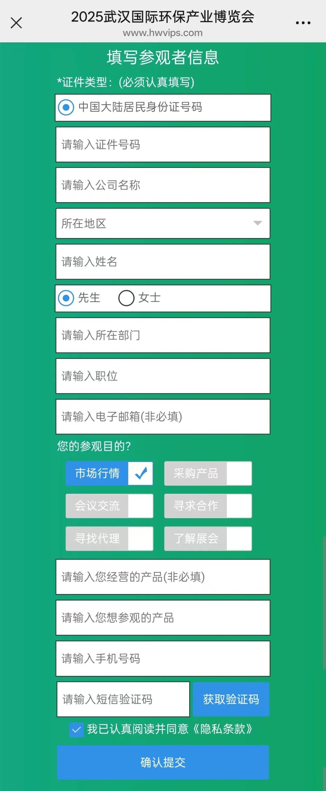 在如下界面中填写参展的相关信息,填写完毕后即可确认提交等待登记
