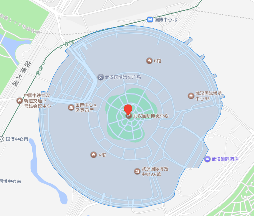 6、月湖桥方向过来车辆:月湖桥→江城大道→杨泗港快速通道→国博大道→四新北 ( 南 ) 路立交→四新北 ( 南 ) 路→国博中心