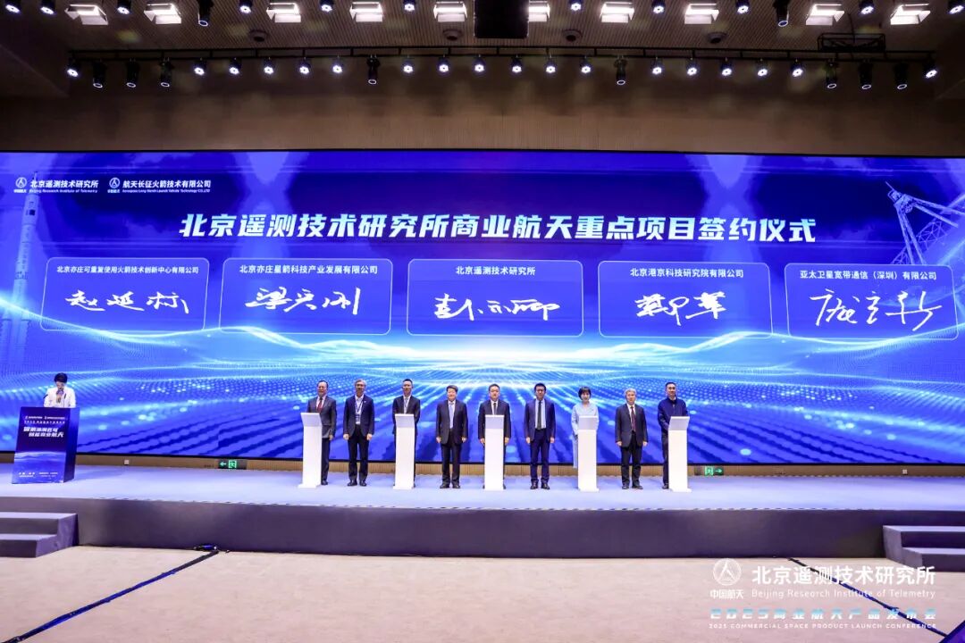 在战略合作签约环节,北京亦庄可重复使用火箭技术创新中心有限公司、北京亦庄星箭科技产业发展有限公司、北京港京科技研究院有限公司、亚太卫星宽带通信(深圳)有限公司分别与北京遥测技术研究所签署战略合作协议。