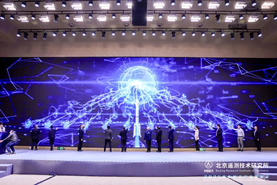 精彩的致辞后,大会迎来了正式的启动时刻。启动嘉宾上台,手触电子屏幕,冲天而起的璀璨光束承载着迸发而出的“遥测力量”,象征着北京遥测技术研究所正阔步迈向商业航天产业发展的新征程。