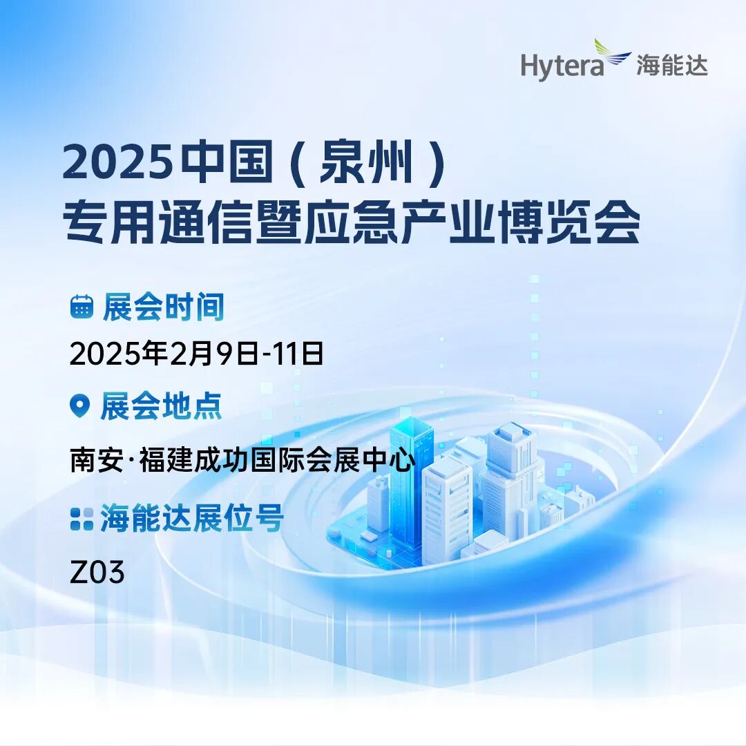 2025中国(泉州)专用通信暨应急产业博览会将于2025年2月9日至11日(农历正月十二至十四)在福建省南安市福建成功国际会展中心盛大举办。作为全球领先的专用通信及解决方案提供商,海能达诚邀您拨冗莅临,见证创新科技,共探通信与应急技术发展的新未来!