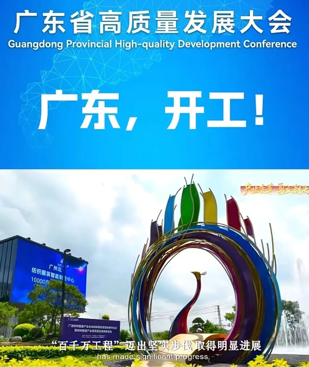 2月5日,春节假期后首个工作日,广东省委、省政府再度召开新春开年第一会——全省高质量发展大会,为广东经济高质量发展描绘奋进蓝图。这是广东连续三年在春节假期后开工第一天召开“新春第一会”,这份“岭南春早”的紧迫感,不仅延续着改革开放先行地的精神基因,更以“再造一个新广东”的雄心,在百年变局中标注出中国式现代化的南方坐标。在2025广东省高质量发展大会上播放的十分钟纪录片《产业变革,勇立潮头》中,广清纺织园在“传统产业提质升级”的篇章中精彩亮相,展现了园区在产业转型升级、重塑传统产业竞争新优势等方面的突出成果,体现了清远打造“万亩千亿级”制造业大平台的坚定决心和显著成效。