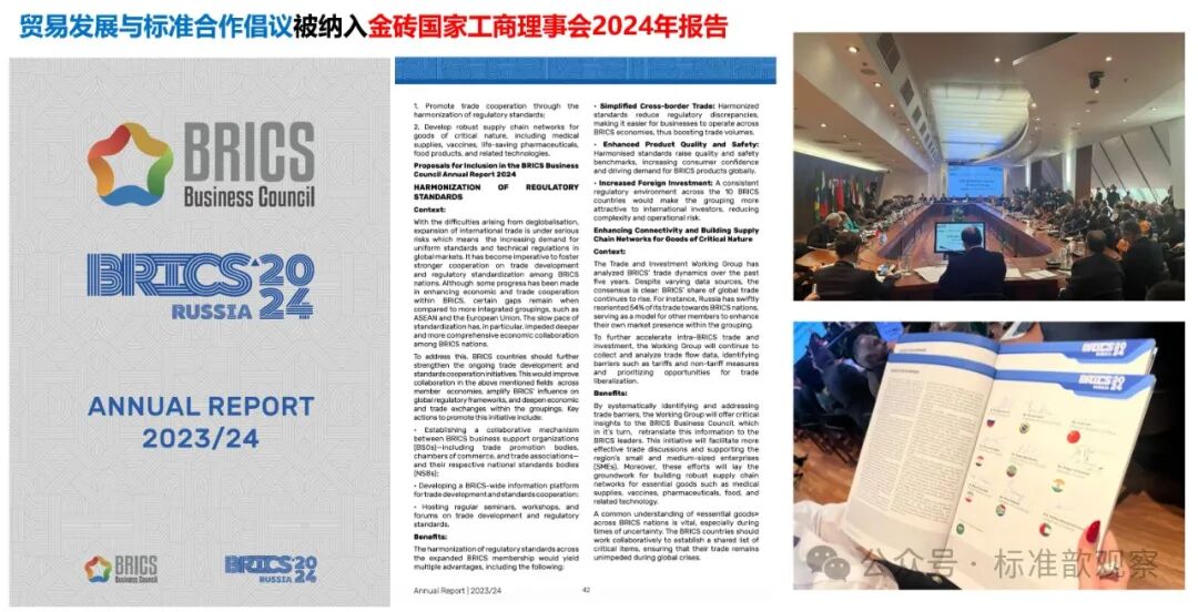 推动贸易发展与标准合作组织(ODCCN)筹建,推广贸易发展与标准合作(DCCN)倡议,提出“更好的标准赋能更好的贸易、更好的贸易创造更好的世界”的愿景,促成DCCN倡议纳入呈交给金砖各国领导人的《金砖国家工商理事会2024年度报告》。