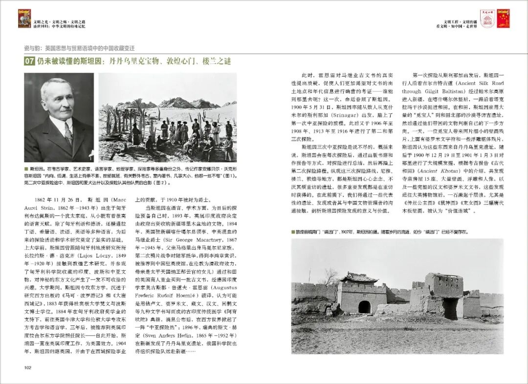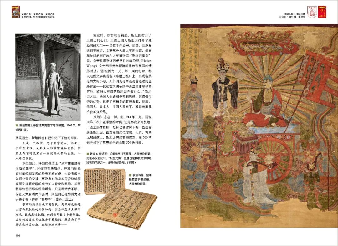 第二次中亚探险,斯坦因将足迹扩展至甘肃敦煌。抵达敦煌后,王圆箓道士为斯坦因打开了藏经洞的大门……当数千件经书、绢画、丝织品运到英国后,文献部分入藏大英图书馆,绢画和丝织品则存放在大英博物馆“斯坦因密室”里,斯坦因之后,法国人伯希和也来到敦煌,凭借懂汉语的优势,运走了更精良的敦煌典藏,接着,俄国人、日本人、美国人都来了,敦煌典藏几乎被瓜分殆尽。