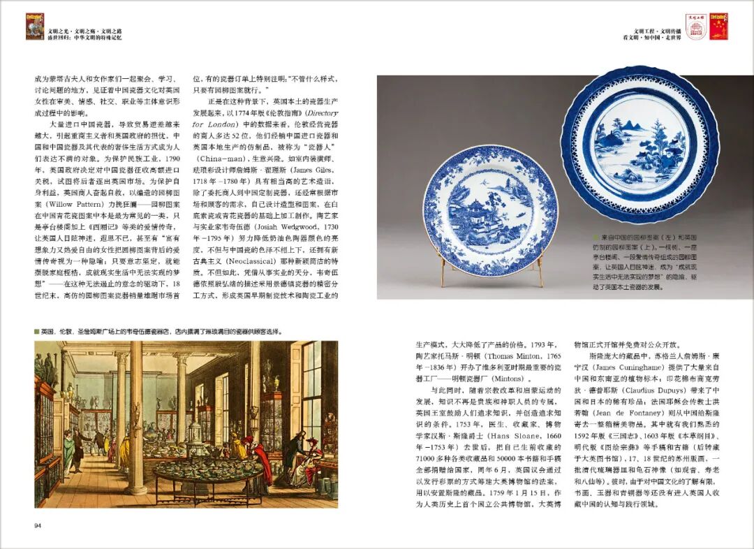 正是在这种背景下,英国本土的瓷器生产发展起来,以1774年版《伦敦指南》中的数据来看,伦敦经营瓷器的商人多达52位,他们经销中国进口瓷器和英国本地生产的仿制品,被称为“瓷器人”(China-man),生意兴隆。1793年,陶艺家托马斯·明顿开办了维多利亚时期最重要的瓷器工厂——明顿瓷器厂。