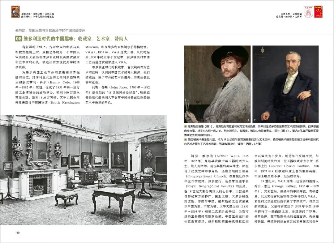 为展示英国工业革命的成果和世界强国的地位,维多利亚女王的丈夫阿尔伯特亲王和朋友亨利·科尔策划、促成了1851年第一届万国工业博览会的成功举办,吸引600万观众前往参观,盈利18.6万英镑,其中大部分用来建造南肯辛顿博物馆(即今维多利亚和阿尔伯特博物馆,V&A),1857年,V&A建成开幕,从此时起到1900年的近半个世纪中,很多精美的中国工艺品通过收藏家进入V&A。